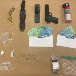 In total, the traffic stop resulted in the seizure of one can of bear spray, an imitation firearm, two bladed weapons, 14.48g of methamphetamine, one mobile phone, $235 CAD, and paraphernalia consistent with drug trafficking.